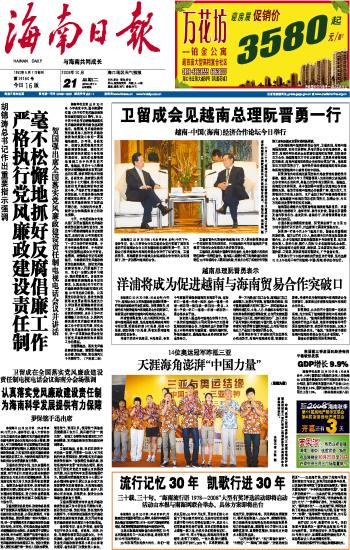 海南日报 头版 001 2008-10-211 2008年10月21日 星期二