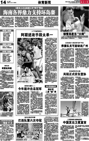 海南日报 体育新闻 014 2008-10-211 2008年10月21日 星期二