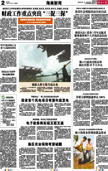 海南日报 海南新闻 002 2008-10-211 2008年10月21日 星期二