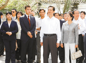 | 10月21日,越南总理阮晋勇一行在海口五公祠参观。 本栏图片均由本报记者 宋国强 摄 |