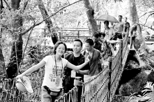 | 呀诺达雨林文化旅游区已经开始“大区小镇”旅游开发新模式的探索。图为游客在该景区游览。
