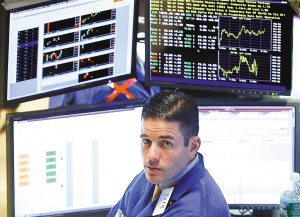 10月20日,在美国纽约证券交易所,一名交易员在工作。由于能源公司财报好于市场预期以及美联储主席伯南克支持美国政府采取新一轮激励计划鼓舞了投资者的信心,纽约股市三大股指大幅反弹。 新华社/路透