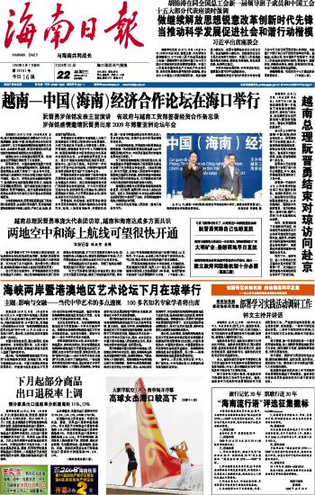 海南日报 首版 001 2008-10-221 2008年10月22日 星期三