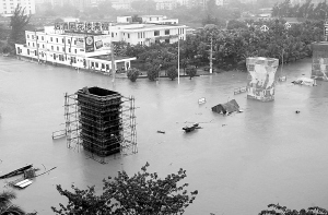 | 海口需要投入巨资全面解决城市面临的排水问题。图为10月14日的海口南海大道。 本报记者 林萌 摄 |