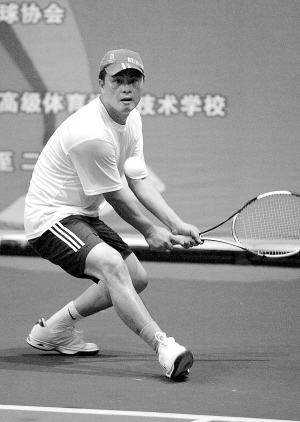 23日,“海矿杯”第十二届海南省业余网球公开赛在海口继续举行。图为海南选手郑文涛在挥拍击球。 本报记者苏晓杰摄