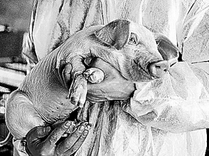 一种转基因新技术,使猪崽打小身上形成抗体。中国农业大学李宁院士课题组培育的我国第一头携带人溶菌酶基因的转基因克隆猪,10月15日在北京昌平试验猪场以自然配种的方式,顺利产下12头健康存活的小猪崽。经检测,其中5只小猪崽为转基因猪。不仅繁殖性能良好,而且能稳定遗传给后代。 人溶菌酶是人体中具有广谱抗菌活性的酶,抗菌活性是其他来源溶菌酶的300倍以上。人溶菌酶转基因克隆猪能在母猪乳汁中生产重组人溶菌酶。李宁向记者介绍,运用转基因技术可以使转基因母猪乳汁中含有高抗菌活性的重组人溶菌酶,重组人溶菌酶能杀死引起仔猪腹泻等疾病的病原微生物,显著增强小猪崽的免疫力,提高仔猪存活率,从而有望培育出抗仔猪腹泻等疾病的转基因猪新品种。 (来源:《科技日报》) |