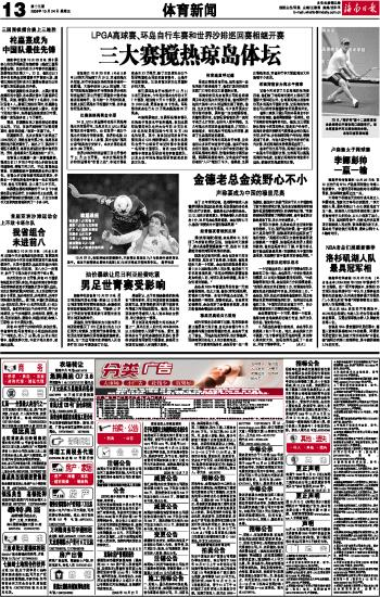 海南日报 体育新闻 013 2008-10-241 2008年10月24日 星期五
