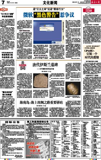 海南日报 文化新闻 007 2008-10-251 2008年10月25日 星期六