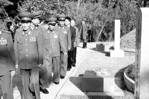 10月25日,朝鲜人民军官兵瞻仰平壤兄弟山志愿军烈士墓。当日是中国人民志愿军赴朝参战58周年纪念日。朝鲜党和政府领导人以及各界群众来到中朝友谊塔,向志愿军烈士们敬献花圈,缅怀烈士们为中朝友谊建立的丰功伟绩。 新华社记者 高浩荣 摄