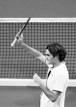 10月25日,在巴塞尔室内赛四分之一决赛中,瑞士选手费德勒以2比0战胜意大利选手博莱利,顺利进入四强。图为费德勒赛后向观众致意。 新华社发