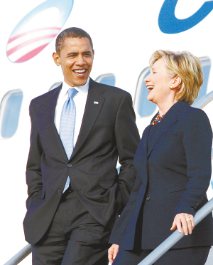 | 近日,美国民主党前总统竞选人希拉里·克林顿(右)频频为民主党的竞选活动加油助威。 新华社/路透 |