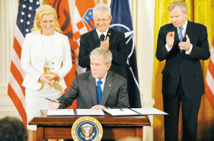 布什签署阿尔巴尼亚和克罗地亚加入北约议定书