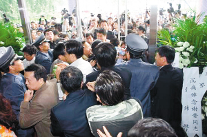 | 告别厅外,大批观众等待进入 |