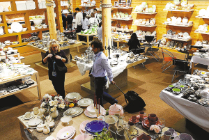 10月25日,几位境外采购商在广交会日用陶瓷展台参观。 正在广州举行的第104届中国进出口商品交易会日用陶瓷展馆内,“中国设计”的产品走俏国际日用消费品市场。 新华社记者 刘大伟 摄