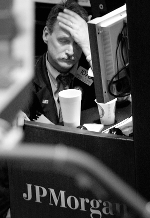 | (资料照片)10月21日,一名交易员在美国纽约证券交易所内工作。尽管信贷市场有进一步解冻的迹象,但因投资者对上市公司盈利前景感到担忧,当日纽约股市三大股指再次大幅下挫。 新华社/路透 |