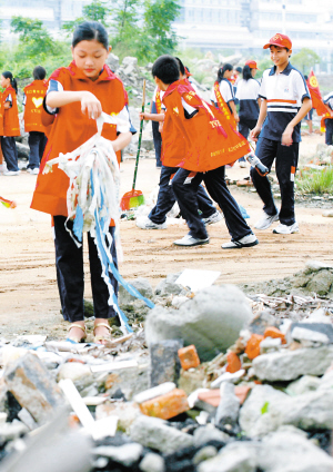 10月26日是我省第六个“环卫工人节”,共青团海口市委组织发动来自海口市各中学千余名学生和青年志愿者,在椰城环卫工人的带领下,将全市多个卫生死角彻底清理干净。 本报记者 苏建强 摄