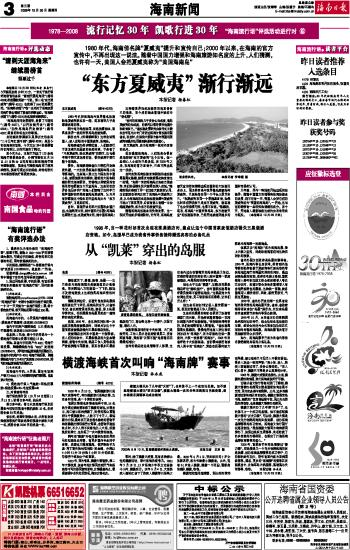 海南日报 海南新闻 003 2008-10-301 2008年10月30日 星期四
