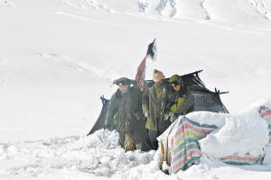 10月30日,官兵在牧场里搜救到受困的牧民。 新华社发