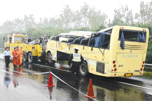 10月30日,发生事故的大客车被拖至路边。 新华社记者 裴鑫摄