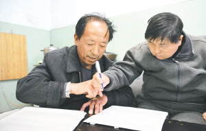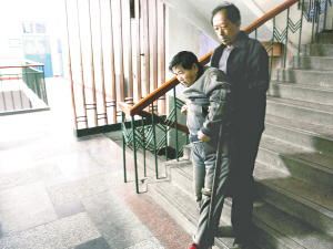 李君平是吕梁市方山县西相王村的小学教师,2003年初突发性脑出血,成为“植物人”。为了帮助妻子恢复知觉,李君平的丈夫孙志荣像照顾婴儿一样侍候完全失去行动能力的妻子。5年来,这对夫妻让见者驻足、闻者落泪。 左图:李君平在丈夫孙志荣的帮助下下楼梯。孙志荣每天都要搀扶着妻子艰难“挪步”四个多小时,帮助她恢复行动能力。 下图:孙志荣在帮助妻子李君平练习写字。 新华社记者 江宏景 摄