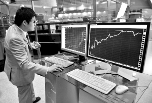 | 十月三十日,在韩国首都首尔的一家证券交易所,一名男子在查看股市指数变化。 新华社/法新 |