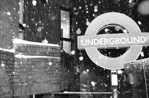 英国首都伦敦二十八日晚下了一阵冰雹之后出乎意料地开始降雪,这是一九三四年以来首次十月降雪。图为英国首都伦敦一个地铁标志牌被雪覆盖。 新华社记者谢秀栋摄