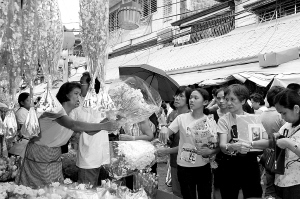 10月30日,在菲律宾首都马尼拉一个鲜花市场,人们正在购买鲜花。万圣节将至,菲律宾民众纷纷购买鲜花,准备去墓地悼念已故亲人。 新华社记者刘华摄
