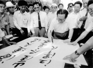 | 1993年4月,江泽民总书记在海南三亚视察并题词。 (资料图片) |