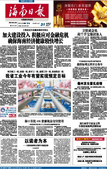 海南日报 头版 001 2008-10-311 2008年10月31日 星期五