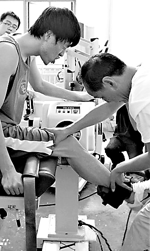 本报讯 刘翔(见左图,小新发)在接受了休斯敦当地三位专家的会诊。医生表示让刘翔不用太担心,他们认为刘翔跟腱的伤并没有到一个非常严重的地步,有法治,只不过较大的问题是如何消除里面的钙化部分。目前三位医生先要研究检查结果,才能给出他们最后的诊断。刘翔的脚伤治疗方案目前还不能下定论。