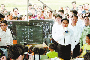 | 胡锦涛总书记板书16字勉励灾区小朋友 |