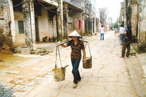 在南丰老街,尚存一些老旧的两层骑楼,时间最短的据说也有80多年的历史,其余的已经被新建的楼房所取代;然而,走在被踩踏得光滑和碾压得变形的石板路上,依然可以隐约感觉得到昔日这里街市的喧哗。