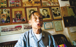 老街的南路33号是社区的办公室,所在的骑楼已有百年历史。这栋骑楼的二楼阳台为六边形形状,小巧玲珑,廊台的柱子上虽然长满了青苔,但其上细致的雕花仍然清晰可辨,一看就像是大户人家的房子。