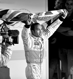 北京时间3日凌晨,迈凯轮车队的英国车手汉密尔顿在巴西大奖赛上获得第五名,从而以98分的总成绩获得本年度一级方程式赛车锦标赛车手总冠军。汉密尔顿现年23岁,他成为F1历史上最年轻的总冠军。法拉利车队获得年度车队冠军。 图为汉密尔顿披着英国国旗庆祝夺冠。 小新发