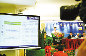 | 11月3日,中国(文昌)新一代运载火箭发射场项目与当地经济社会发展高峰论坛在文昌举行。图为中国航天工程咨询中心主任、研究员王崑声作《太空经济与海南发展》的演讲。 本报记者 王凯 摄 |