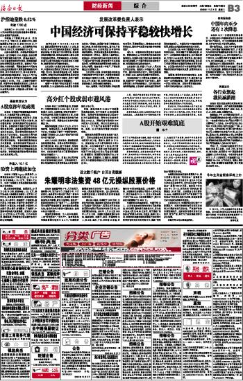 海南日报 财经新闻综 合 011 2008-11-041 2008年11月04日 星期二