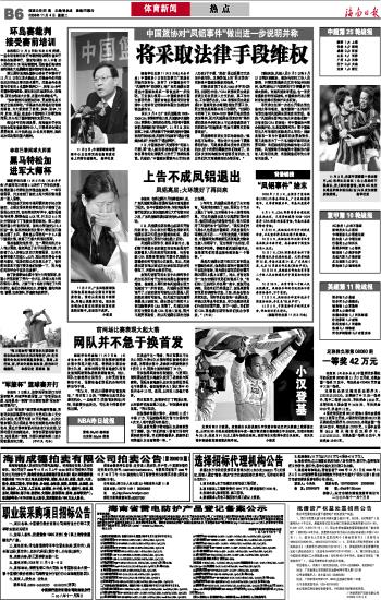海南日报 体育新闻热 点 014 2008-11-041 2008年11月04日 星期二