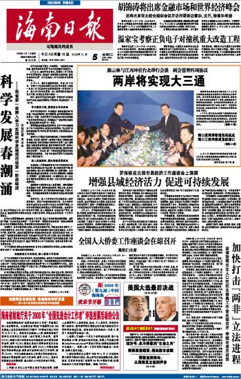 海南日报 头版 001 2008-11-051 2008年11月05日 星期三