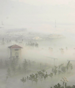 11月6日山东省威海市出现平流雾。据气象专家介绍,平流雾是渤海、黄海北部一带的特有天气现象,当暖湿空气流到冷海(地)面上时,就会降温而凝结成雾气,依附在海面而随风平行漂移。 新华社发(于启波 摄)