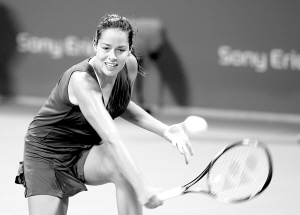 11月6日,在多哈举行的WTA世界女子网球年度总决赛中, 塞尔维亚选手伊万诺维奇以1:2不敌俄罗斯选手兹沃纳列娃,遭遇两连败,后者两连胜。栗组的比赛,大威2:1胜德门蒂耶娃,小威2:0轻取萨芬娜。图为伊万诺维奇在比赛中。 新华社发