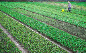 11月6日,海口市流水坡无公害蔬菜基地,灾后抢种的蔬菜抽出新叶,菜农正忙着施肥。再过10天时间,本地灾后抢种的短期叶菜将陆续上市。 本报记者 李英挺 摄