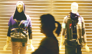 | 11月8日,海口开始降温,服装店给橱窗里的模特换上冬衣吸引消费者。 本报记者 李英挺 摄 |