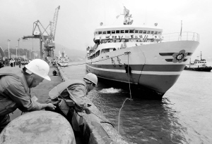 11月8日, “台马”号客轮抵达福州马尾港。当日,从台湾基隆港出发并弯靠马祖福澳港的“台马”号客轮,经过10多个小时的航程后,安全抵达福州马尾港。这是“两马”海上客运航线首次延伸至台湾本岛。 新华社记者 张国俊 摄