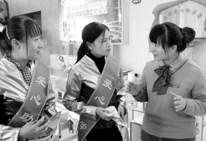 11月8日,贫困学子在接受岗前培训。 当日,来自山东大学、山东经济学院、济南大学等高校的30名贫困学子经过培训后正式亮相泉城义工“爱心助学岗”。泉城义工“爱心助学岗”是由济南时报泉城义工志愿服务联络站和共青团济南市委青春创业服务中心共同推出的,旨在帮助更多济南高校贫困学子通过自己的劳动,顺利完成学业。 新华社记者 朱峥 摄
