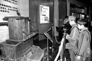 11月8日,一些学生在江西消防教育博物馆内参观展出的清末消防水龙。 当日,江西消防教育博物馆在南昌市开馆,其中距今100多年的清朝末期消防水龙、消防头盔首次亮相。江西消防教育博物馆是一个集消防教育与体验,消防文物和史料陈列展示为一体的专业性场馆,馆内收藏有1000余件包括实物、照片、影音资料等在内的消防历史文物。 新华社记者 胡锦武 摄