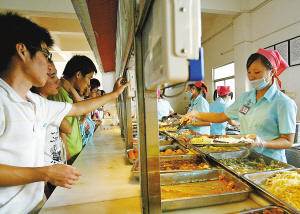 在经整改后恢复开放的第二食堂外,记者见到了学校专设的食堂投诉点,志愿者正在发放关于食堂饭菜质量的问卷调查表。在食堂里,排队打饭的学生渐渐多起来,食堂员工都戴着帽子、手套、口罩依次给同学们盛饭菜,有多种荤、素菜供选择。人力资源管理专业的一名女同学一边买菜一边对记者说:“现在感觉上比以前放心多了,食堂的菜看起来也干净、新鲜!”