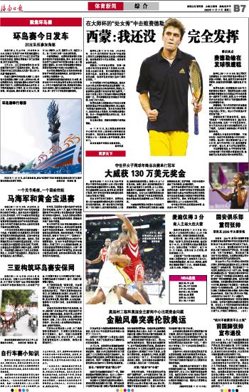 海南日报 体育新闻 015 2008-11-111 2008年11月11日 星期二