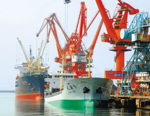 | 记者日前从石家庄海关获悉,今年前三季度河北省进出口额达302.3亿美元,比去年同期增长66.2%,高出全国平均增速41个百分点。图为两艘轮船停泊在秦皇岛港码头装货。 新华社记者 杨世尧摄 |