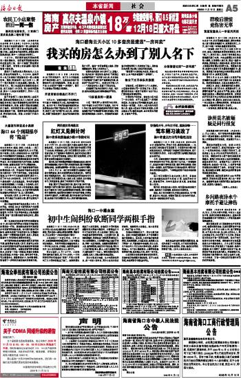 海南日报 社 会 005 2008-11-121 2008年11月12日 星期三