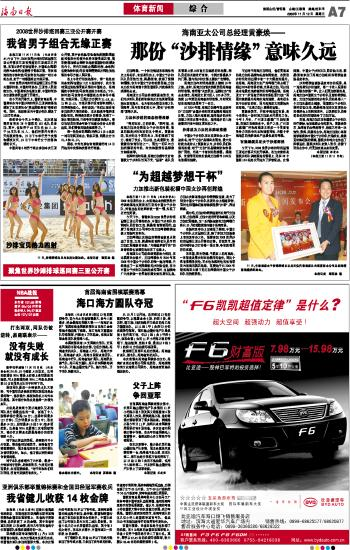 海南日报 体育新闻 007 2008-11-121 2008年11月12日 星期三
